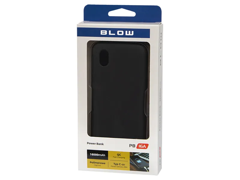 Szybkie ładowanie Quick Charge 3.0Power bank marki BLOW posiada wbudowaną technologię szybkiego ładowania Quick Charge 3.0 co zdecydowanie skróci czas napełniania baterii Twoich ulubionych urządzeń elektronicznych. W porównaniu ze zwykłymi power bankami nasz produkt pozwoli Ci zaoszczędzić nawet kilkadziesiąt minut na jednym ładowaniu.