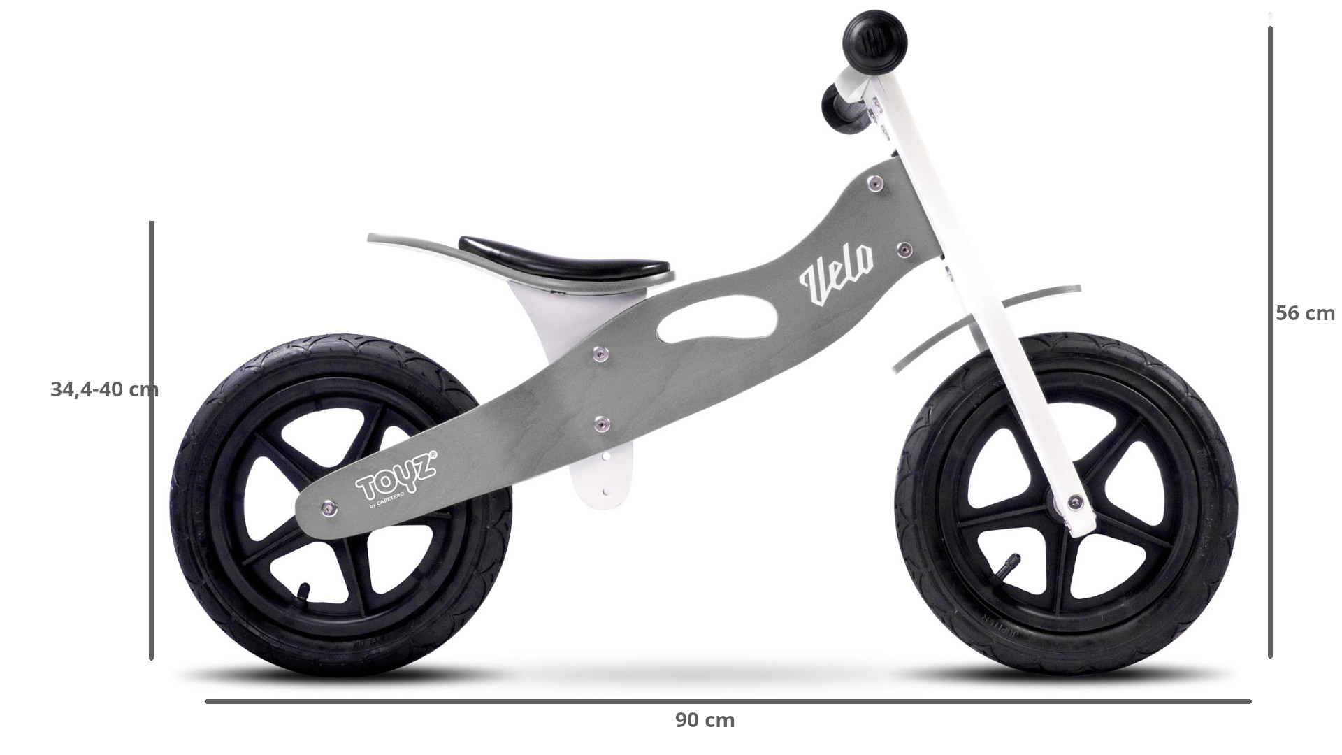W porównaniu do innych rowerków siodełko w modelu Velo jest większe i lepiej wyprofilowane, co gwarantuje komfortową jazdę. Pokrycie z eko-skóry zapewnia łatwe czyszczenie i dużą odporność na zużycie. Wysokość siodełka można regulować od 34,5 cm aż do 40 cm, dzięki czemu rowerek dopasuje się do każdego małego użytkownika.