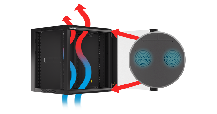 WYDAJNE CHŁODZENIE - DWA OTWORY WENTYLACYJNE W PODŁOGOWYM PANELUSeria WFFA dedykowana jest również dla tych, którzy szukają szaf do zastosowania w bardziej ekstremalnych warunkach temperaturowych panujących wewnątrz konstrukcji, jednocześnie nie musząc rezygnować z funkcjonalności, estetyki i bezpieczeństwa. Zastosowanie 2 otworów wentylacyjnych zarówno w podłogowym, jak i w sufitowym panelu, zapewnia lepszy przepływ powietrza i chłodzenia, natomiast użytkownik zyskuje jeszcze większą kontrolę nad obiegiem temperatury w szafie. |