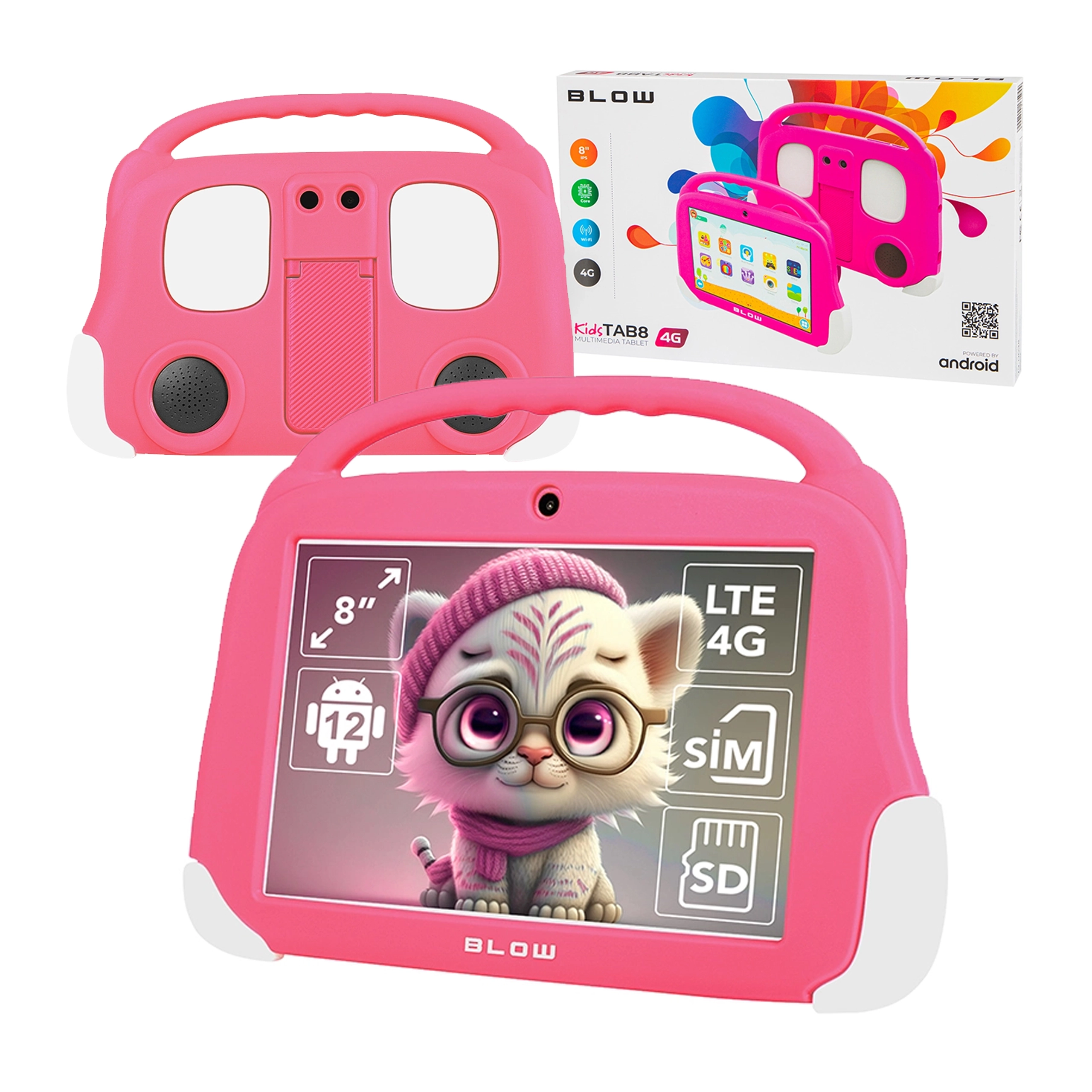 Tablet edukacyjny dla dzieci BLOW KidsTAB8 8'' 4G 4/64GB różowy + etui