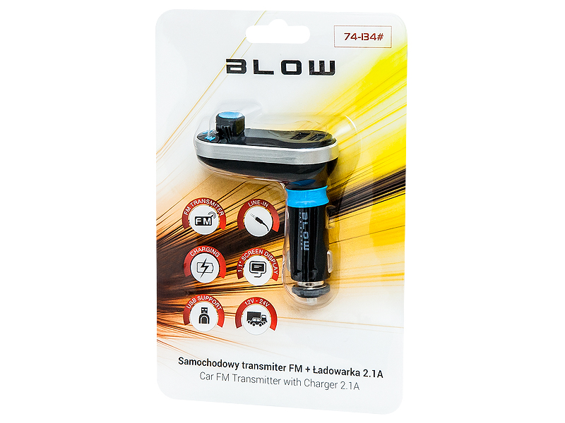 Transmiter FM BLOW z wyświetlaczem LCD 1,4" i podwójnym gniazdem ładowania USB 2,1ATransmiter FM BLOW jest urządzeniem umożliwiającym słuchanie ulubionej muzyki zapisanej w formacie MP3 lub WMA na radioodtwarzaczu samochodowym nie obsługującym tych formatów. Transmiter wyposażono w dwa gniazda USB 2,1A za pomocą, których możemy ładować wszelkie urządzenia mobilne zasilane przez port USB. Ruchomy przegub łączący transmiter z wtyczką zapalniczki umożliwia optymalne położenie transmitera w kokpicie. Ciekawym rozwiązaniem jest potencjometr głośności, który jest jednocześnie przyciskiem odtwarzaj i pauzy. Ponadto urządzenie wyposażono w duży wyświetlacz LCD zawierający wszelkie parametry pracy transmitera. |