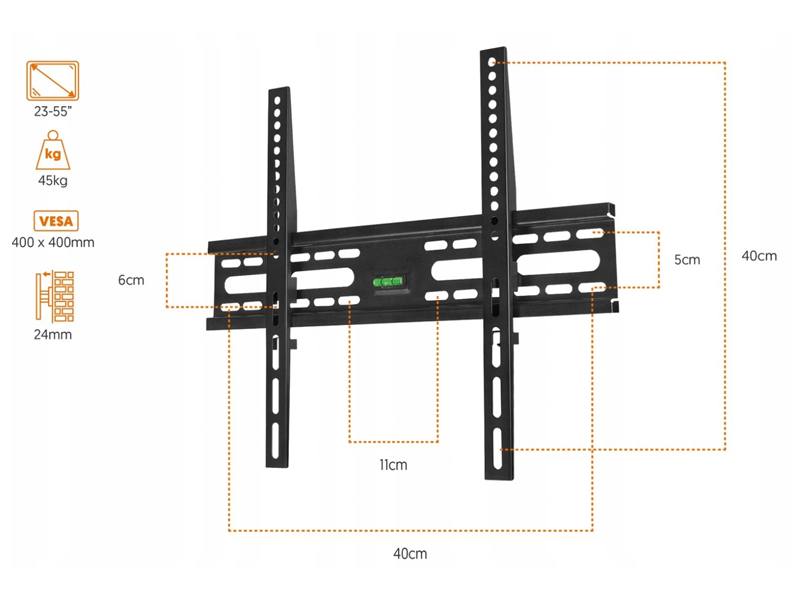 Szeroka kompatybilnośćNiesamowicie cienki uchwyt LCD, renomowanej marki LTC, który jest w stanie sprostać wymaganiom nawet najbardziej wymagających użytkowników. Uchwyt Jest kompatybilny ze standardem VESA max. 400 x 400 mm, dopasowany do telewizorów LCD o wymiarach 23 – 55 cali. Dzięki swojej niesamowitej, płaskiej budowie, sprawia że telewizor oddalony jest od ściany jedyne 24 mm, co sprawia, że urządzenie na nim zamocowane wygląda jakby wisiało po prostu na ścianie. |