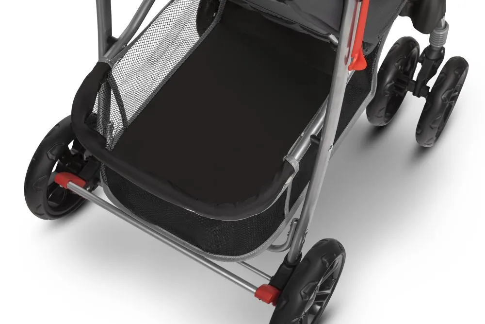 Oprócz torby z tyłu wózka znajduje się również zapinana na rzep kieszonka – w sam raz na smartfona czy małą przekąskę. Pojemny kosz pomieści wszystkie potrzebne akcesoria pielęgnacyjne i ulubione zabawki maluszka. Idealnie sprawdzi się też podczas zakupów.